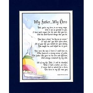 "My Father My Hero" Touching 8x10 Poem, Double-matted In Navy/White And Enhanced With Watercolor Graphics. A Gift For A Dad.